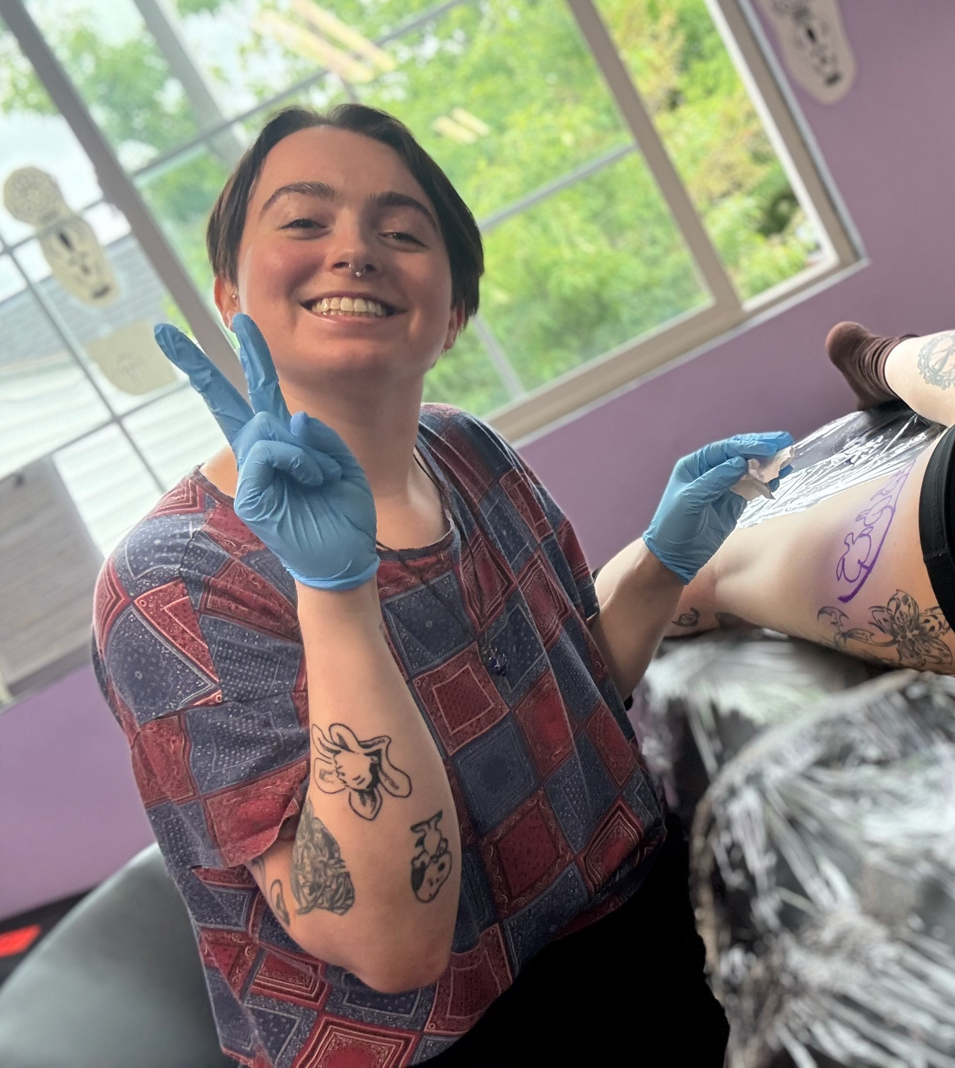 My name is Aya Doslu (they/them) and I am a multidisciplinary artist born and raised in Portland, Oregon. Before I started tattooing, I received my BFA in Intermedia/Multimedia from PNCA. Transitioning into tattooing has felt like the perfect combination of drawing and working with my hands that I’ve been looking for, and i’m so happy to be here. Outside of the tattoo studio, you can find me cuddling with my cat Gizmo, watching too much TV and movies, and making more art. I am most happy when I am making and creating.